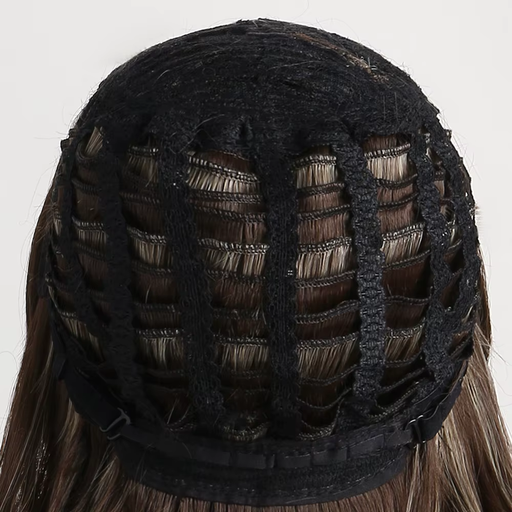 - hnědá paruka s melírem